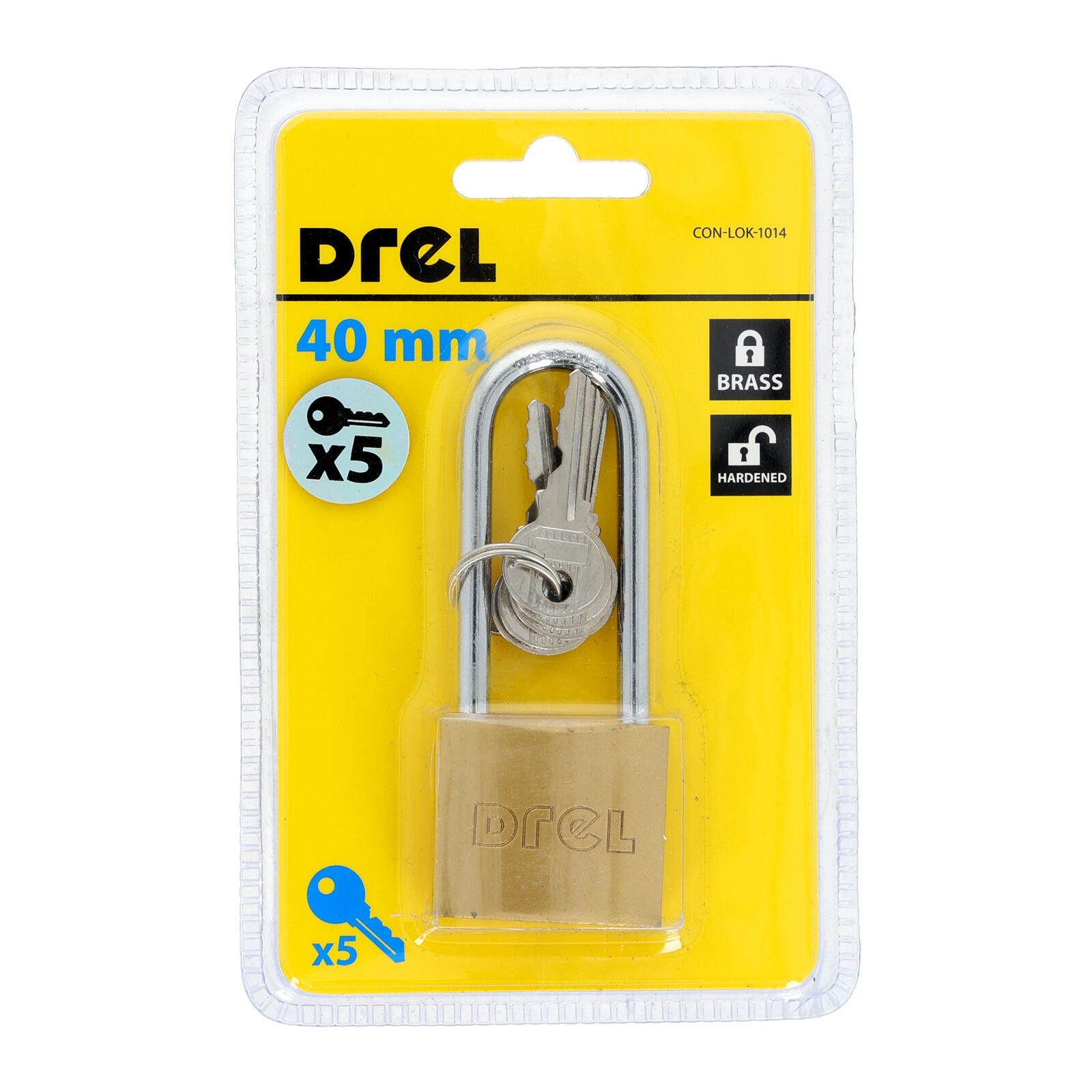 Zámek visací 40 mm, prodloužený, Ms, 5 klíčů.