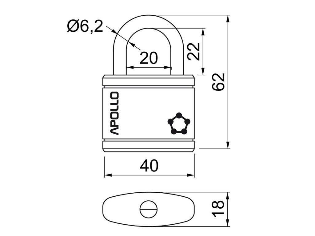Třmen zámku HARDENED, jištěný ve dvou bodech.