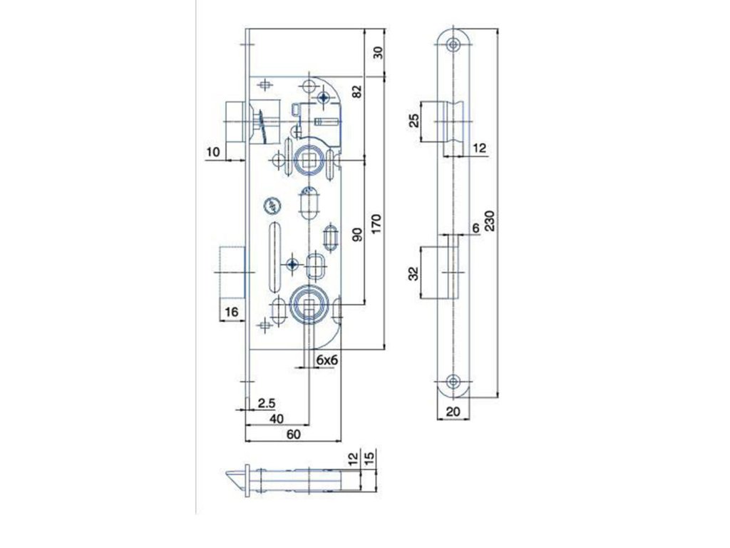 Zadlabací mezipokojový zámek WC 01-16 jednozápadový bez převodu s otvory pro dělené štíty je univerzální na pravé i levé dveře.