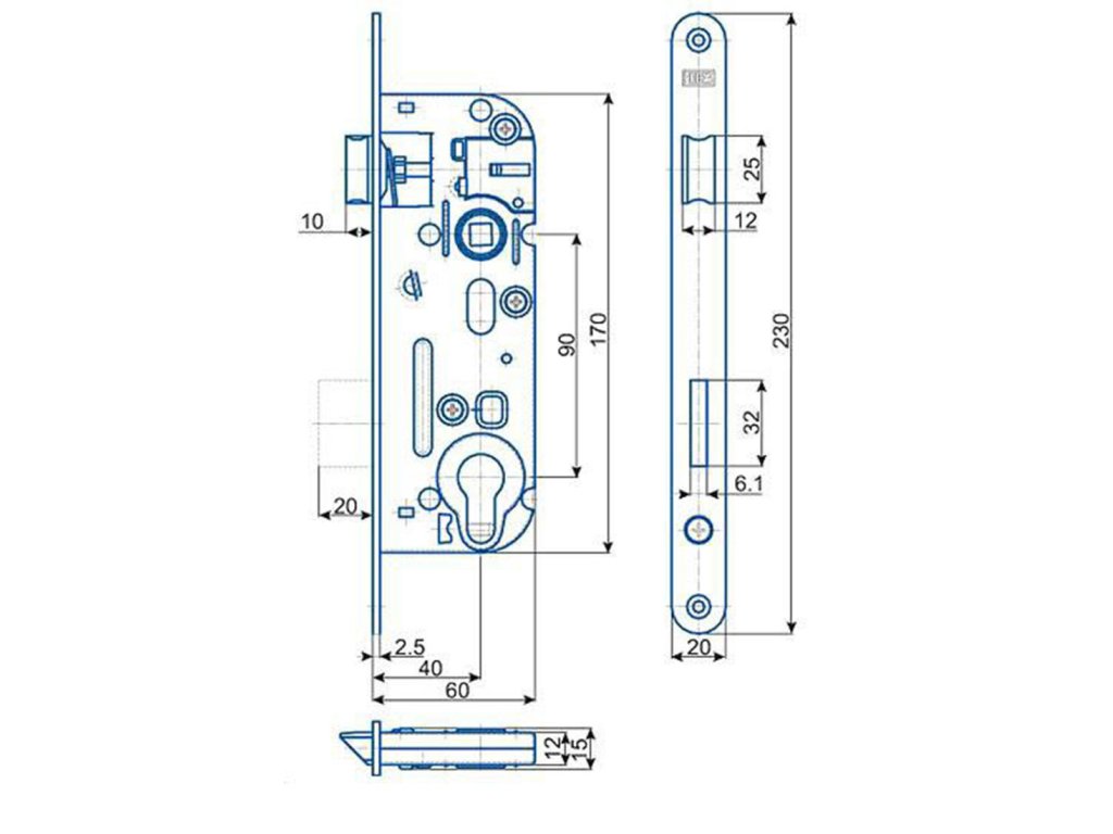 Zadlabací vložkový zámek 02-04 jednozápadový bez převodu s otvory pro dělené štíty je univerzální na pravé i levé dveře.