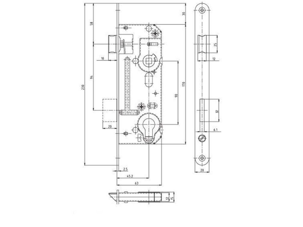 Zámek zadl. 02-06 - 90/60 P-L BÍ Zn vložkový.