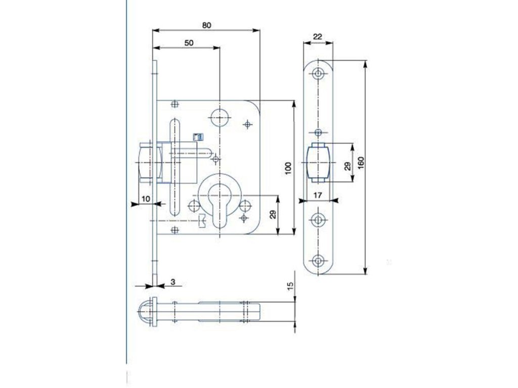 Zadlabací vložkový zámek 2784 s válečkovou závorou jednozápadový bez převodu s otvory pro dělené štíty je univerzální na pravé i levé dveře.