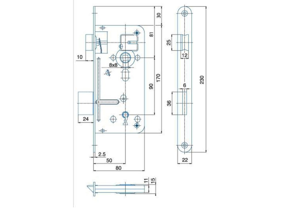Zadlabací zámek obyčejný 536A dvouzápadový bez převodu je univerzální na pravé i levé dveře.
