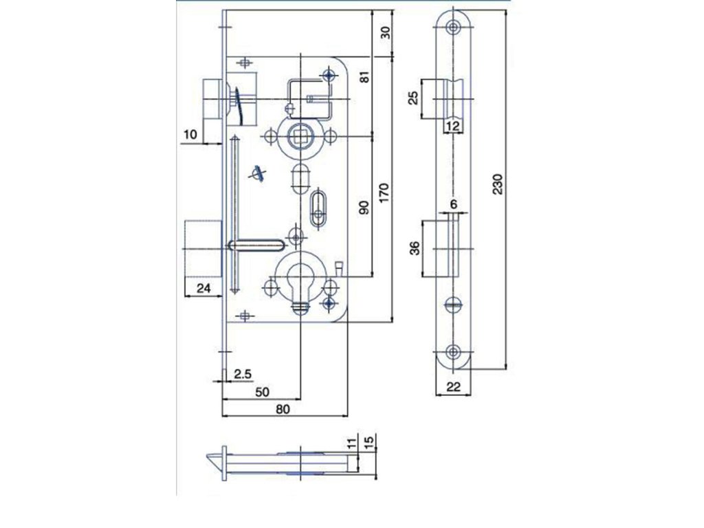 Bezpečnostní zadlabací vložkový zámek K102 dvouzápadový s pojistkou a převodem je univerzální na pravé i levé dveře.