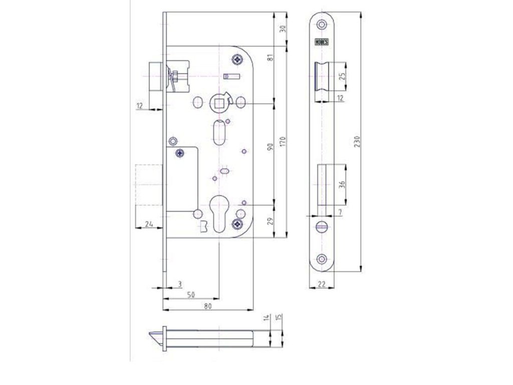 Bezpečnostní zadlabací vložkový zámek K113 dvouzápadový s převodem je univerzální na pravé i levé dveře.