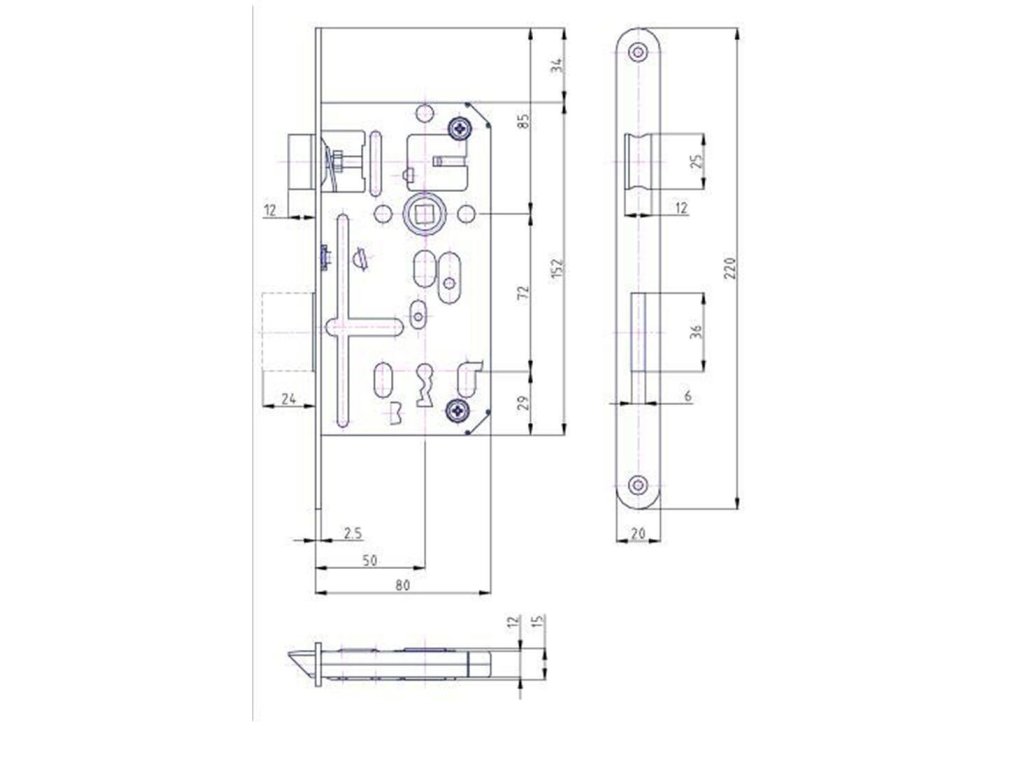 Zadlabací obyčejný zámek K134 dvouzápadový bez převodu s otvory pro dělené štítky je univerzální na pravé i levé dveře.