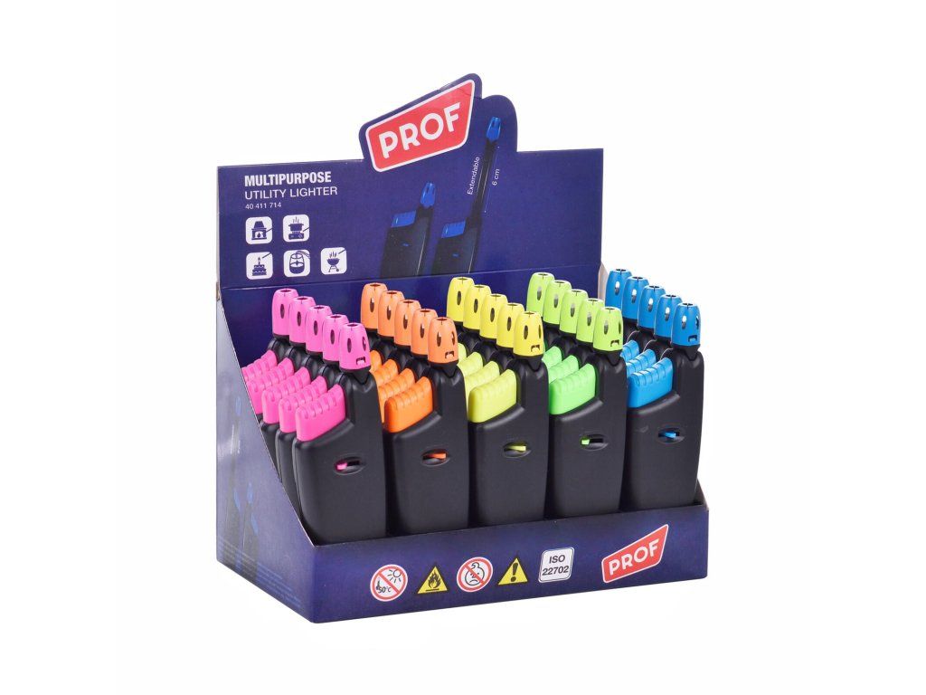 Zapalovač PROF 12 cm, plamínkový, teleskopický,, mix barev.