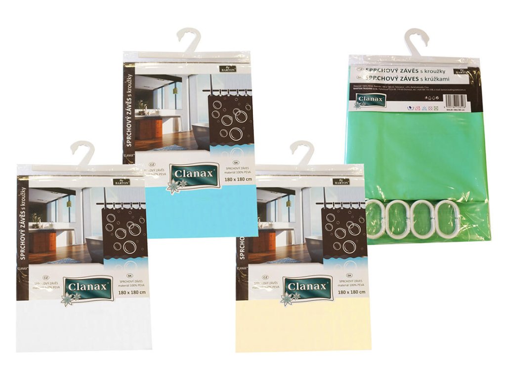 Závěs koupelnový SOLID 180 x 180 cm, PEVA + 12 háčků, mix barev.
