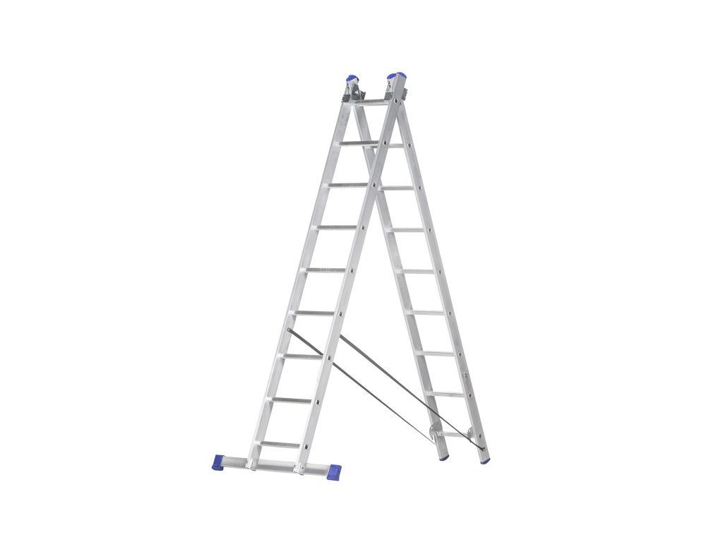 Žebřík Al, univerzální, 2dílný, 9 příček, 2,43 / 3,99 m, VHR H 2x9, nosnost 150 kg, ELKOP.