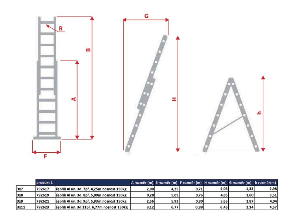 - víceúčelový trojdílný žebřík po sedmi příčkách